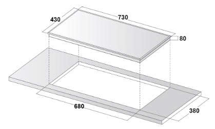 - Kích thước khoét đá: R680 x S380 (mm)