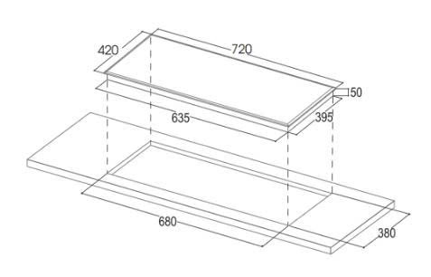 - Kích thước mặt bếp: 720 x 420mm
