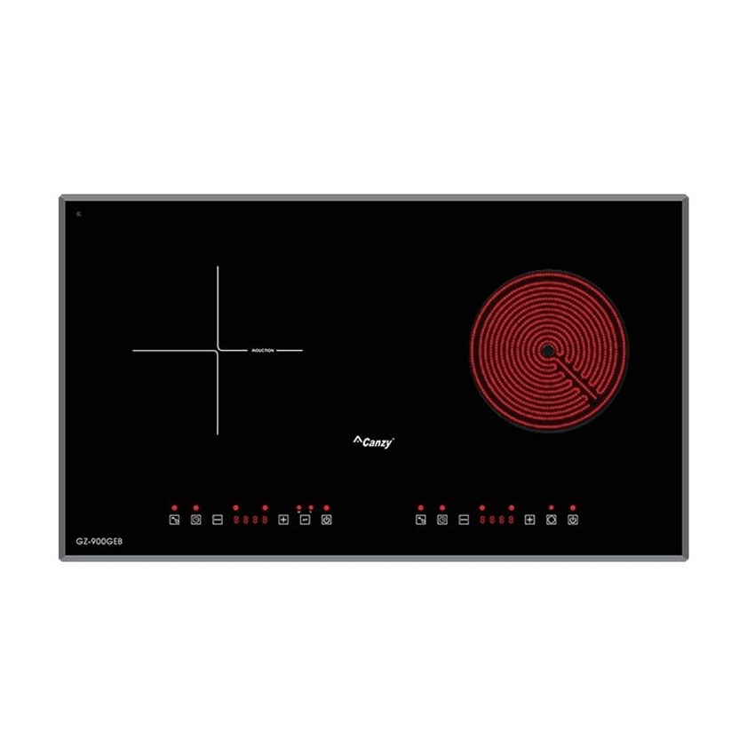 Bếp từ hồng ngoại Canzy CZ 900EGB được thiết kế 2 vùng nấu 1 từ 1 hồng ngoại giúp đun nấu nhanh chóng, tiết kiệm thời gian và tiết kiệm được một lượng điện năng đáng kể. Bếp dùng chất liệu mặt kính K+ vát cạnh sang trọng, hệ thống mạch và mâm sản xuất theo công nghệ Châu Âu. Bếp được tích hợp chức năng booster công suất cao nhất. Sử dụng bảng điều khiển cảm ứng trượt Touch Selcet, điều chỉnh độc lập cho từng vùng nấu. Bảng điều khiển có 9 dải công suất với các mức nhiệt độ khác nhau để bạn điều chỉnh cho phù hợp với các món ăn. Ngoài ra, các chức năng như chế độ hẹn giờ, khóa trẻ em... được trang bị đầy đủ. Bếp có thể tự động nhận diện đáy nồi và chỉ sinh nhiệt tại đáy nồi nên những vùng xung quanh không bị nóng, đảm bảo an toàn cho người sử dụng.