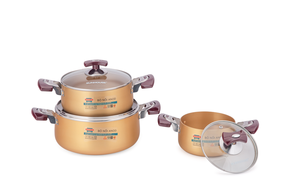 Ứng dụng công nghệ đó – SUNHOUSE cho ra đời bộ nồi Anod với độ bền cứng lâu dài cùng thiết kế tinh tế, sang trọng, là sự lựa chọn tối ưu cho mọi căn bếp gia đình.