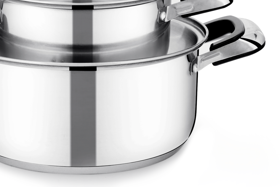 Chất liệu inox cao cấp giúp cho bộ nồi SH768 sáng bóng, dễ dàng lau chùi, vệ sinh. Kiểu dáng của bộ nồi hài hòa, trang nhã, phù hợp với mọi không gian bếp.