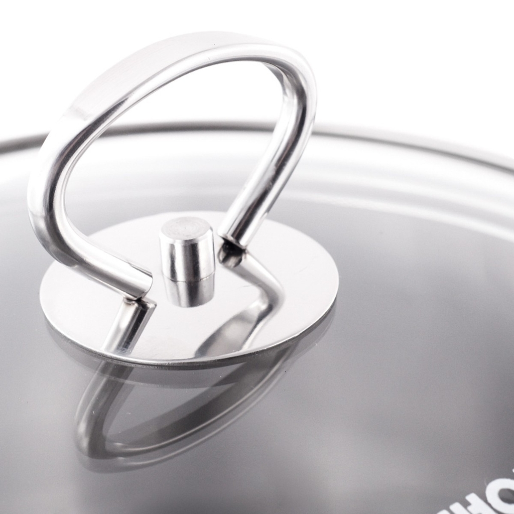 - Nắp vung được làm từ thủy tinh chịu nhiệt, có lỗ thoát khí, giúp bạn có thể nhìn thấy thức ăn bên trong mà không cần mở nắp.