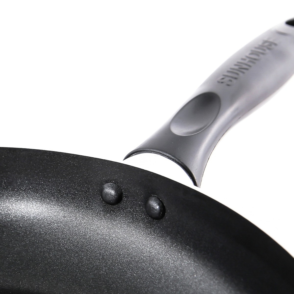 - Cán chảo dài, làm bằng nhựa cao cấp, giúp dễ cầm nắm mà không bị nóng.