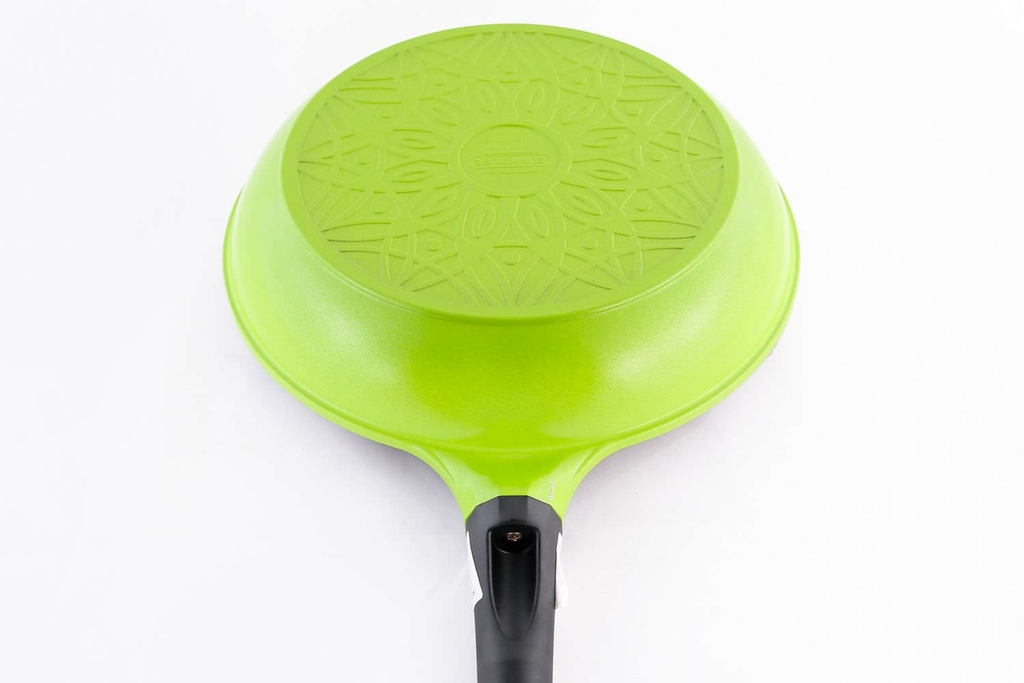 - Kiểu dáng hiện đại, màu sắc tươi sáng: Bề mặt bên ngoài chảo tráng lớp sơn tĩnh điện màu xanh/đỏ sáng bóng, hạn chế trầy xước và bám bẩn. Lòng chảo phủ vân đá hoa cương bền đẹp, phù hợp với không gian bếp trẻ trung.