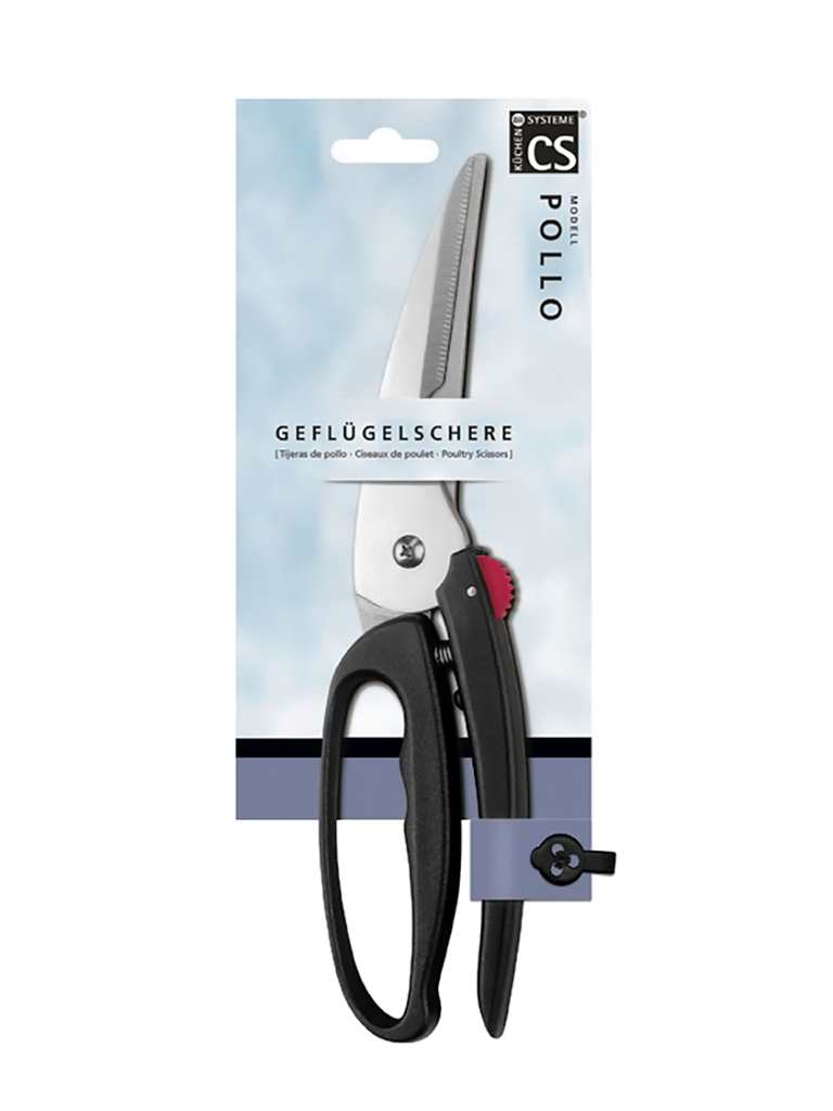 Chuyên dùng trong nhà bếp và phòng ăn, có lưỡi kéo dày 3mm có răng cưa - tăng lực cắt giúp cắt được những đồ ăn cứng như: xương gà, cá. Có nút khóa an toàn ngay cán cầm.