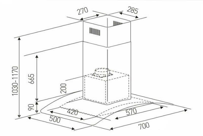 - Loại máy: Máy hút mùi kính cong