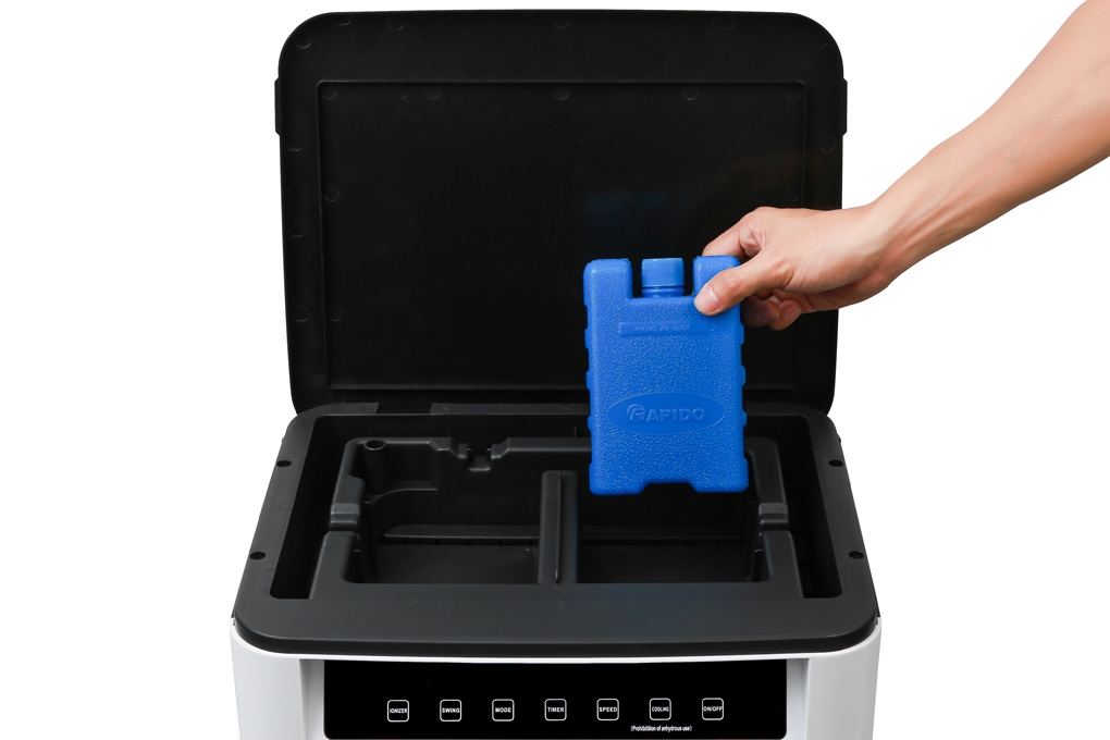 Dạng đá hóa học này có thể tái sử dụng, chỉ cần cho vào ngăn đá tủ lạnh để làm lạnh trước khi cho vào bình chứa nước của quạt. Chúng sẽ giúp hơi nước thoát ra mát mẻ hơn, tăng hiệu quả giải nhiệt.