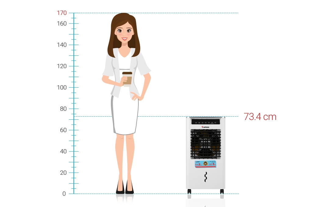 Quạt có thang hiển thị mực nước tiện quan sát, thiết kế cửa châm nước bên trên thật dễ thao tác khi cần.