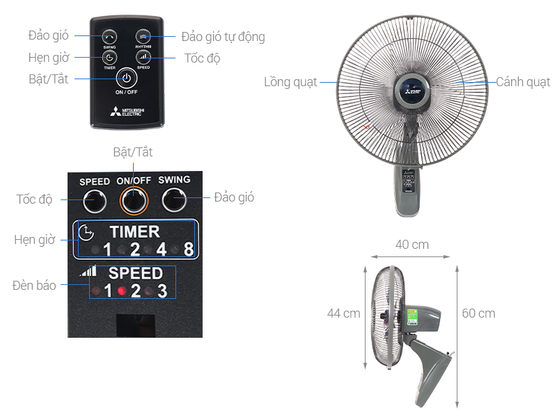 Quạt treo tường Mitsubishi thuộc dòng quạt điện cơ với kiểu dáng đơn giản, màu sắc trang nhã, kết hợp hài hòa trong không gian kiến trúc hiện đại
